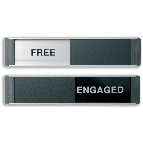 Sliding Signs. Meeting Room Vacant/Engaged Sign. Aluminium/PVC door signs with slider to give dual message. Self-adhesive strip for easy fixing. Size: 255x52mm. ... Document Viewer